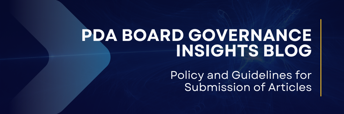 Our purpose with the blog is to have the Reader consider the content, engage in a conversation, challenge convention when appropriate, and consequently, better deliver the essential Governance function. Governance is a broad topic and as we publish materials, we will address concepts relevant to the PDA Committees and their members, as well as the PDA membership in general.