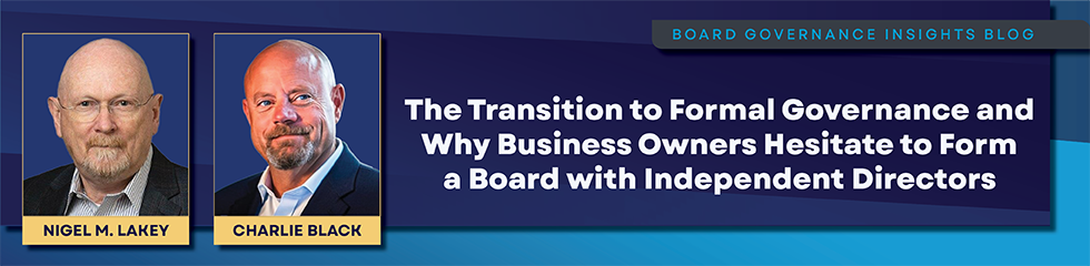 Much has been written, and even more spoken, concerning the value of introducing formal governance in private companies. While larger enterprises may have made the transition naturally, smaller companies, particularly those that are closely held or family businesses, may struggle with the formalities and more rigid processes that come with formal governance. A necessary first step in the transition to formal governance is widely accepted as the addition of independent members to the enterprise’s Board of Directors.